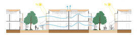 Mostram como questões ambientais - tais como insolação, iluminação, ventilação, etc. - norteiam a concepção do espaço e o desenvolvimento/estruturação da forma, seguindo orientação solar, estratégias bioclimáticas, seleção de materiais, fluxos de ar, etc.